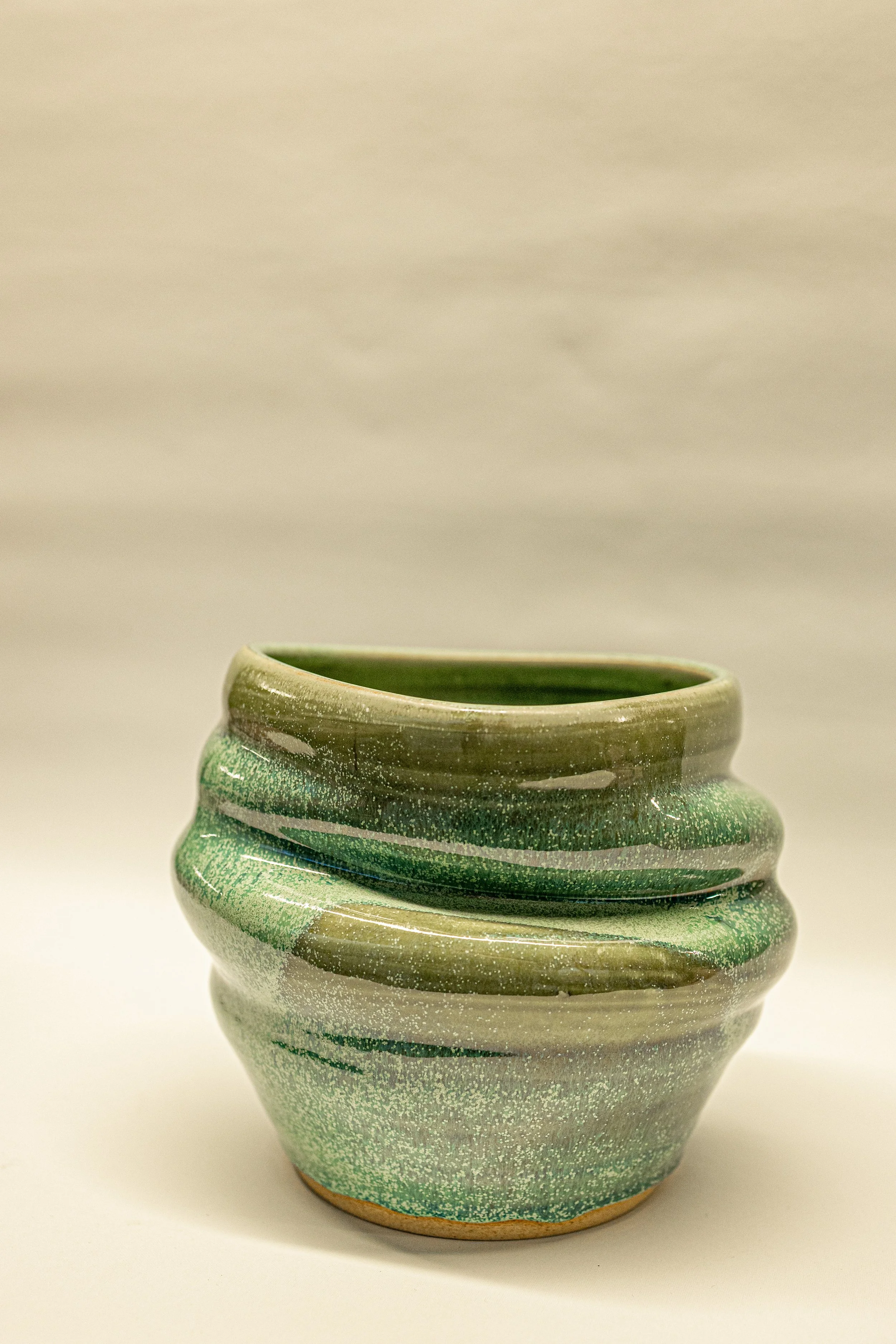Unique piece inspired by the flow and connections that nature inspires us. This piece could be used as a center piece or a short vase for wild flowers. It can also be used as a candle holder.